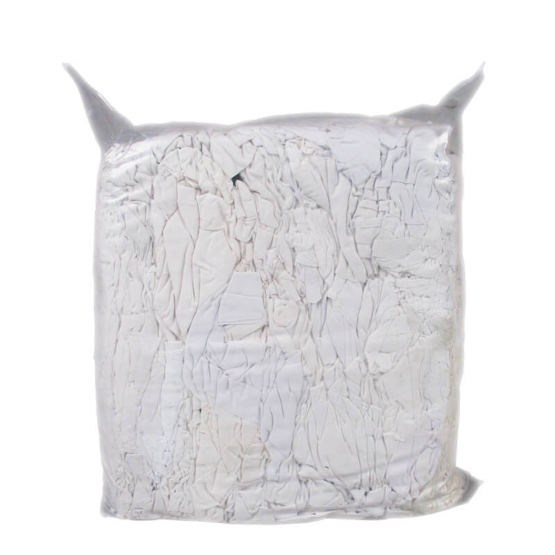 Essuyages fins – blancs lavés et coupés. Livrés en sac de 10 kg ou en boîte distributrice blanche.