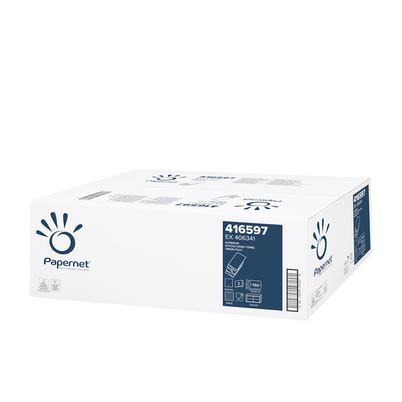 Essuie-main Papernet Plié Z en cellulose pure, compatible au distributeur Tork H2.Dimensions: 32x20cm – 20×150 feuilles